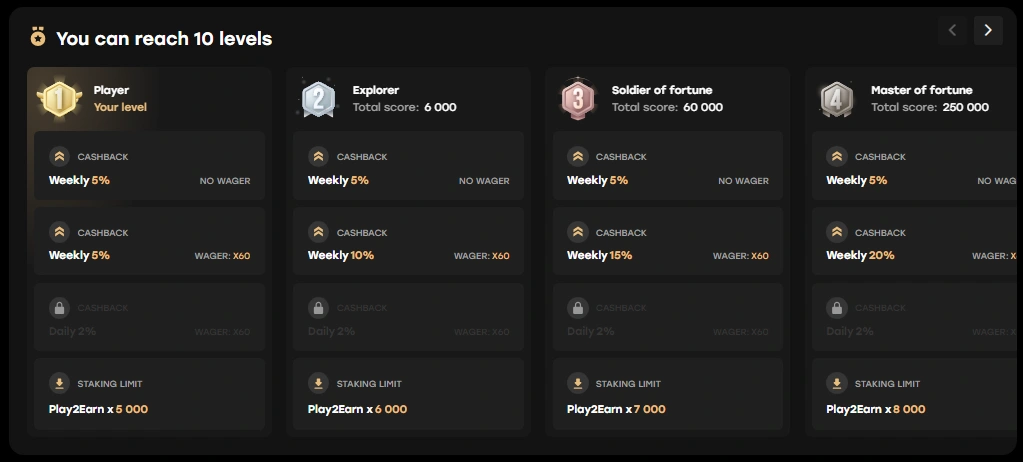 This scoring system is transparent, meaning players know exactly how many points they need to advance to the next level. Many players also appreciate the opportunity to earn bonuses not only for playing itself but also for completing various missions and tasks in the casino. Every day, players can earn new points, both for playing in the casino and for participating in tournaments, which significantly increases the interactivity and engagement of the community.